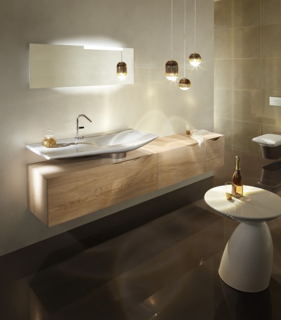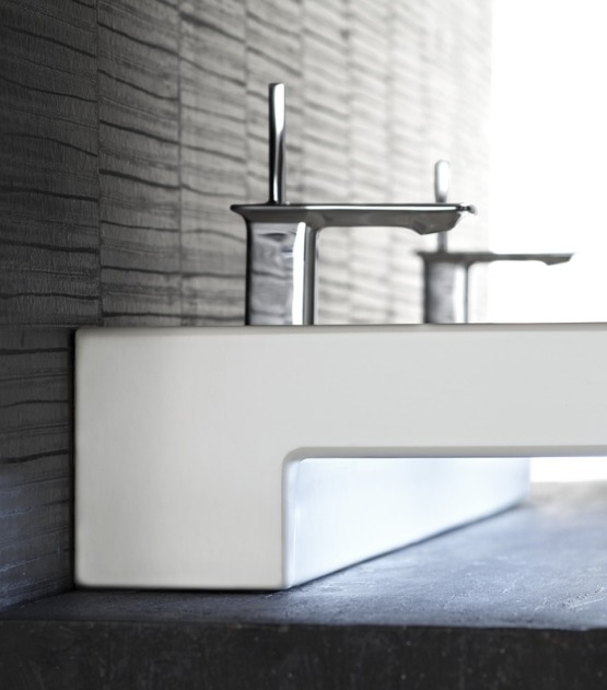 Create a sensual experience in your bathroom with the contrasting forms, textures and materials of the Stillness Collection. Stillness blends ceramic pieces with furniture using fluid, asymmetric lines to evoke a feeling of draped silk, and the striking yet graceful vanity top creates a truly unique bathroom design.